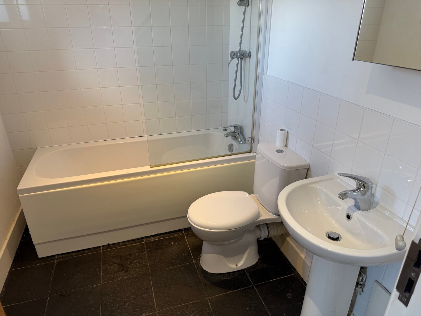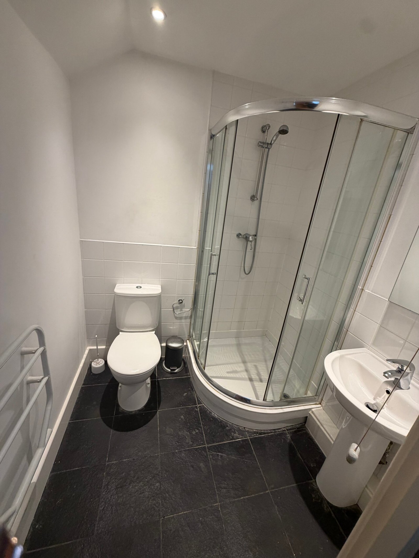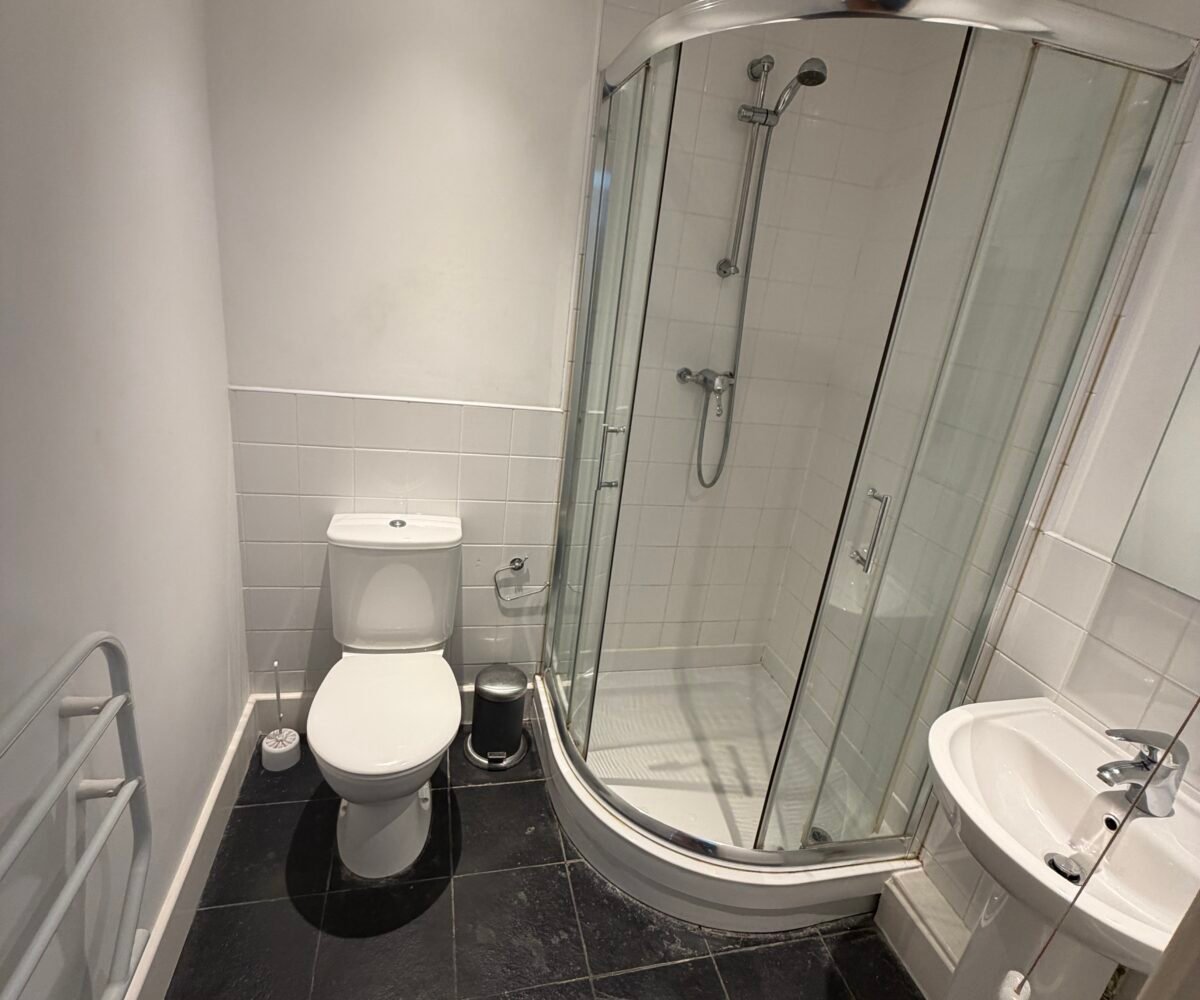 Downstairs there is a modern bathroom with a powerful shower over bath.