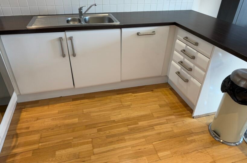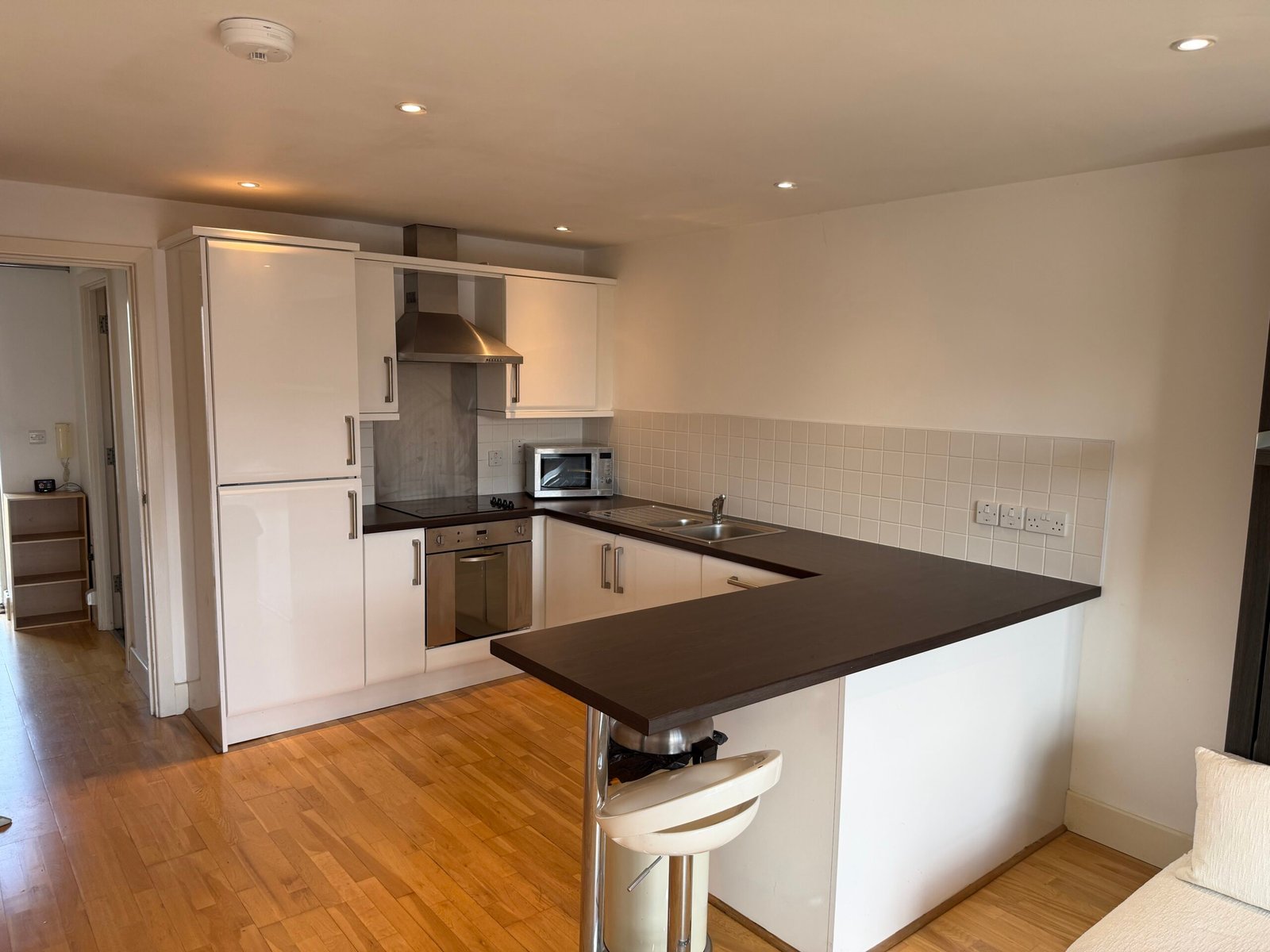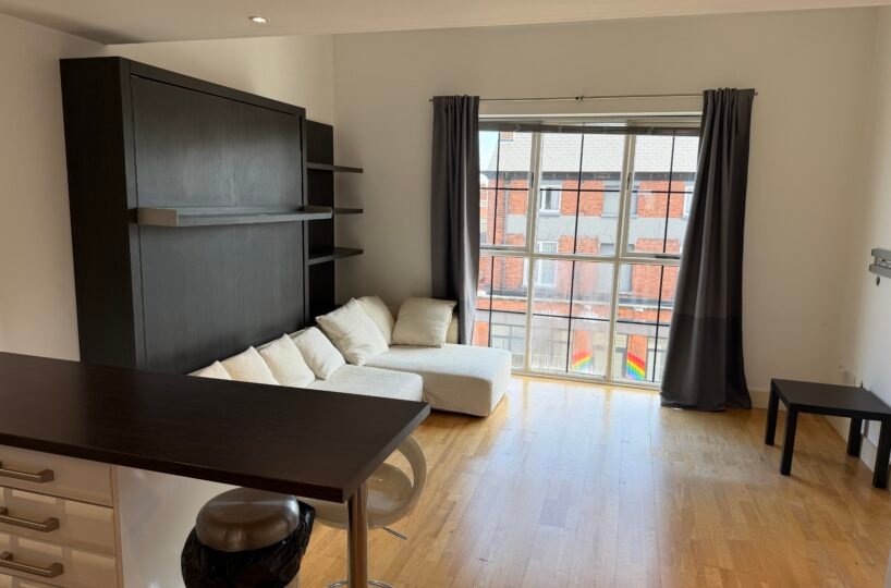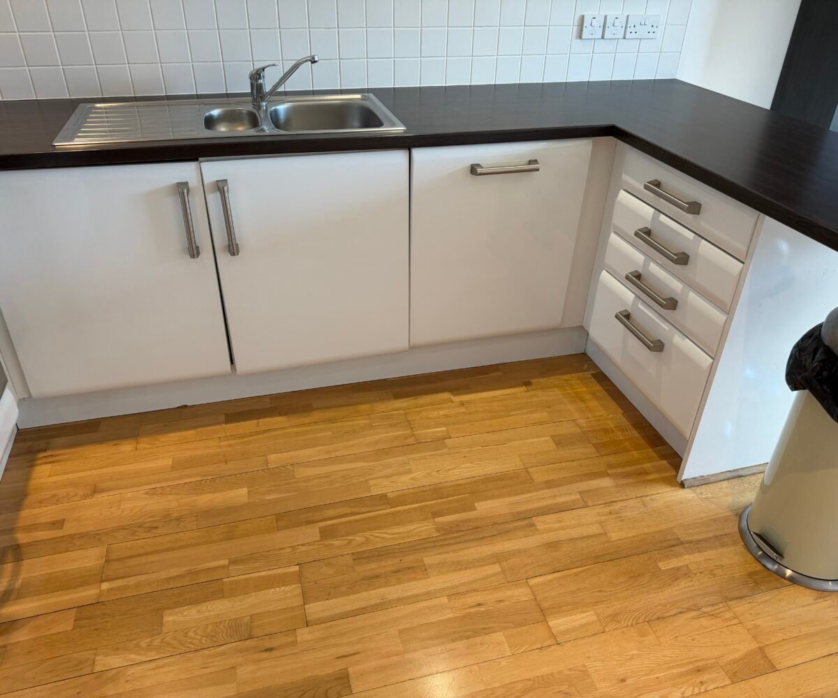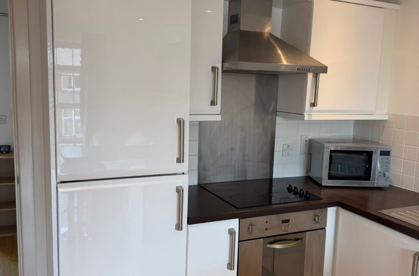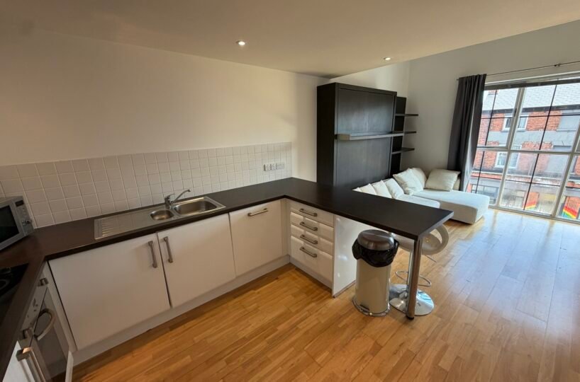 Villency Court modern duplex apartments have living dining kitchens with breakfast bar, built in fold-away double sofa-bed, large floor to ceiling window, understairs storage room and oak wooden flooring throughout.