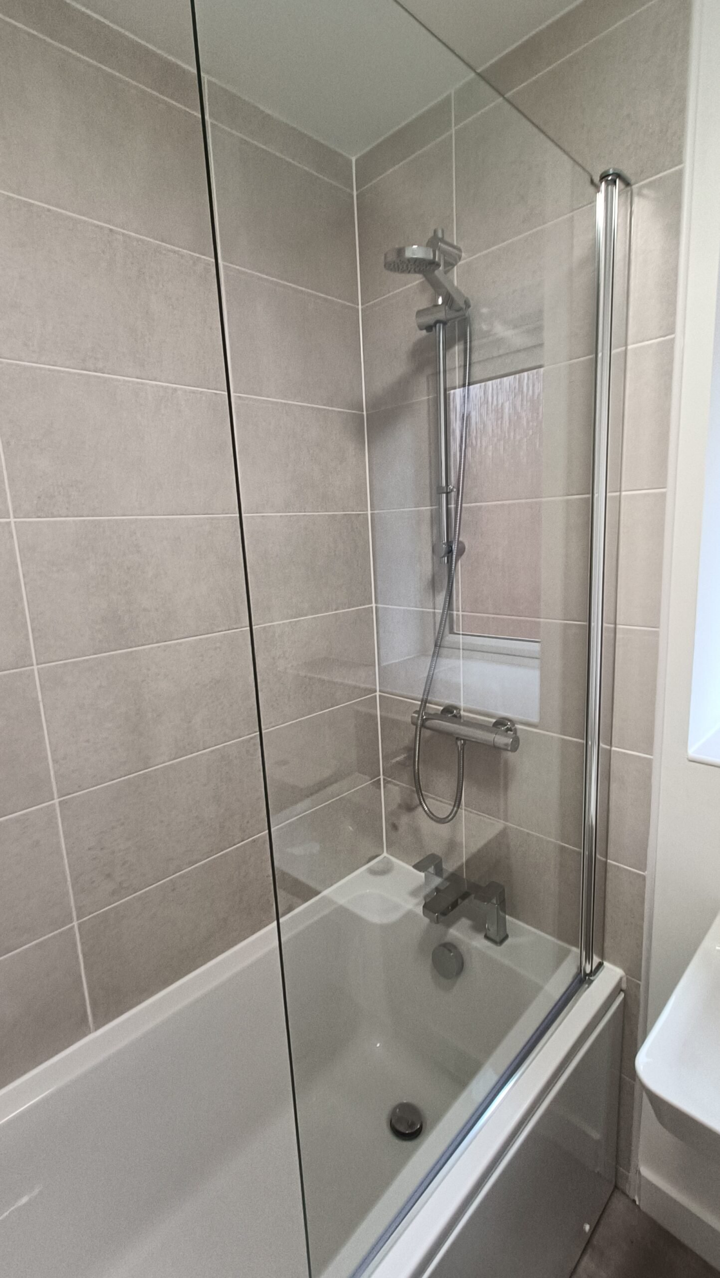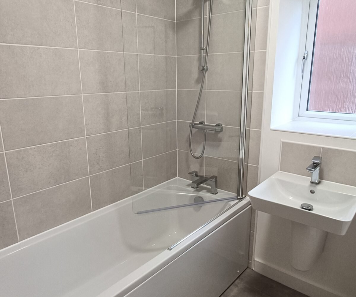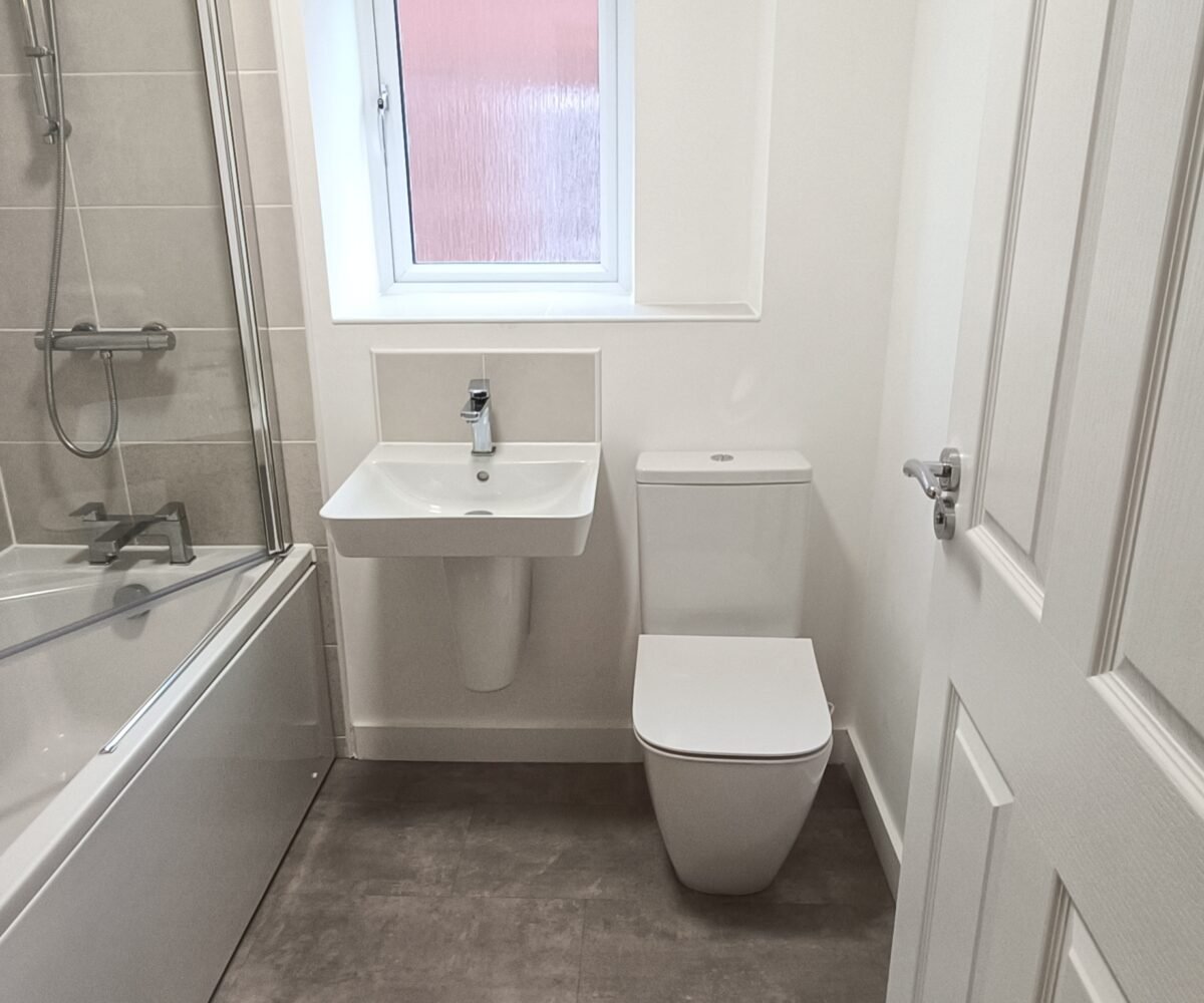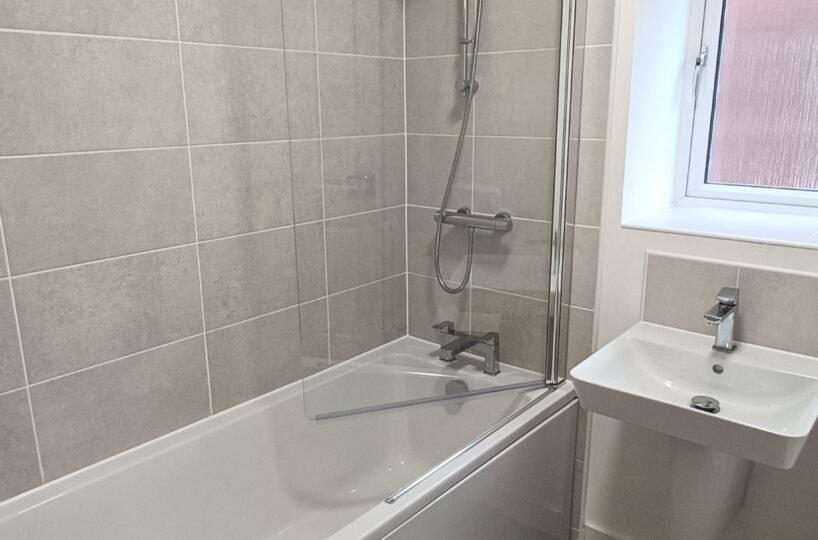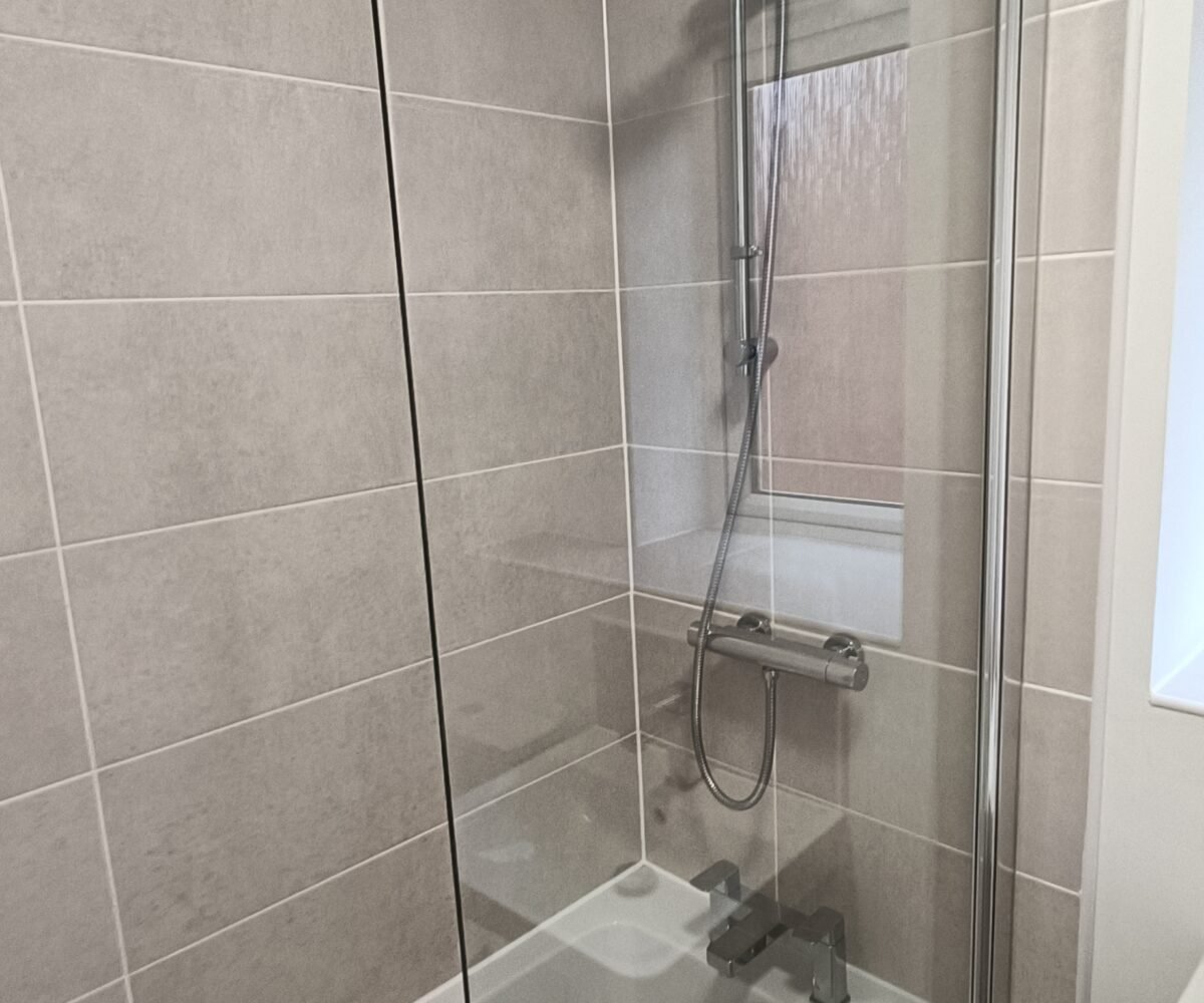 Family bathroom with shower over bath