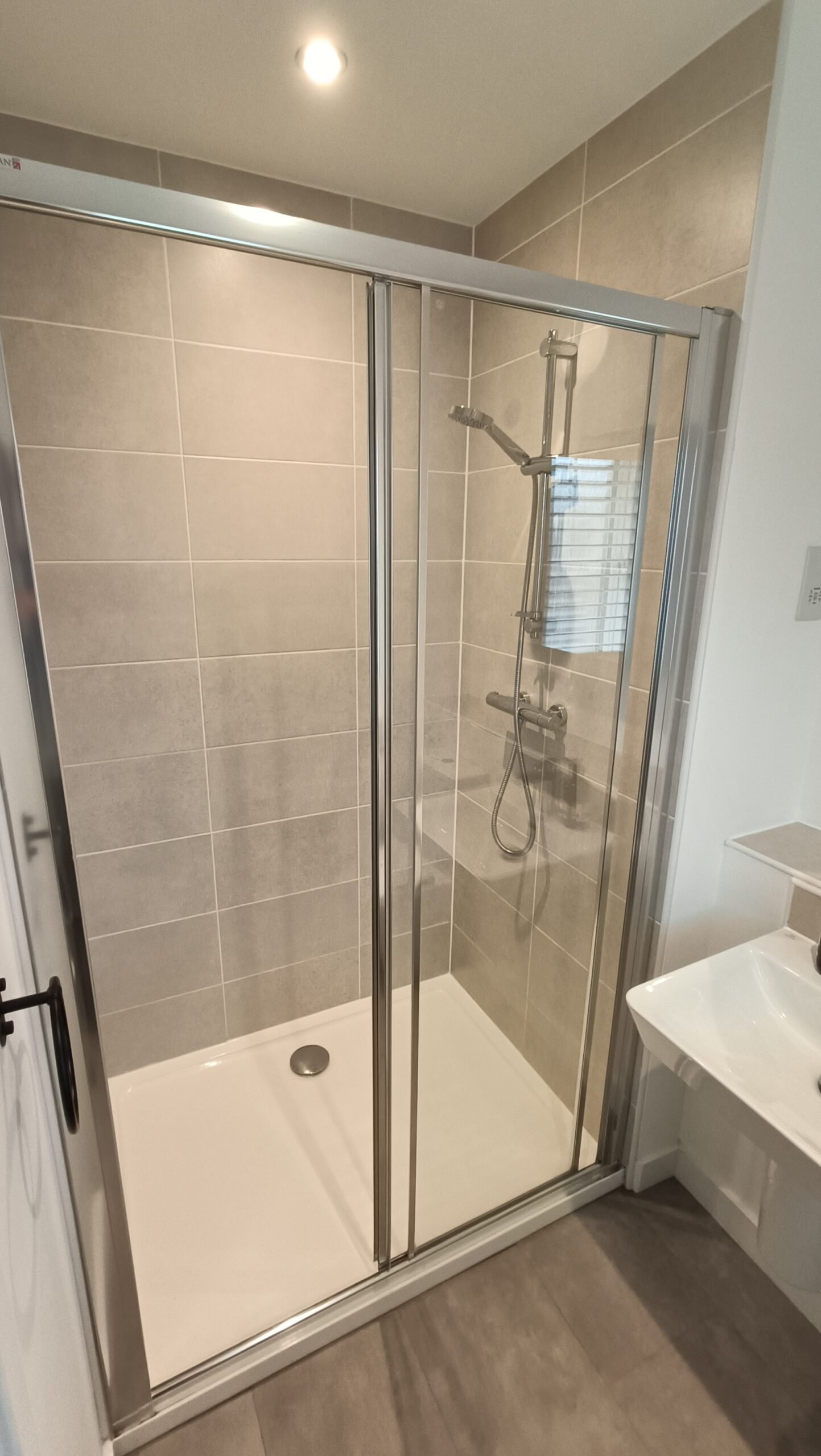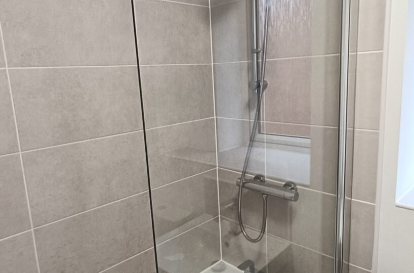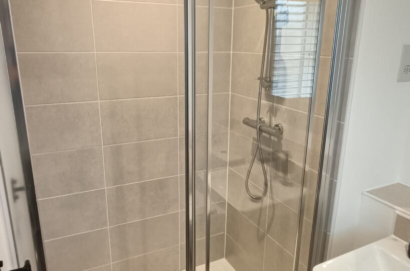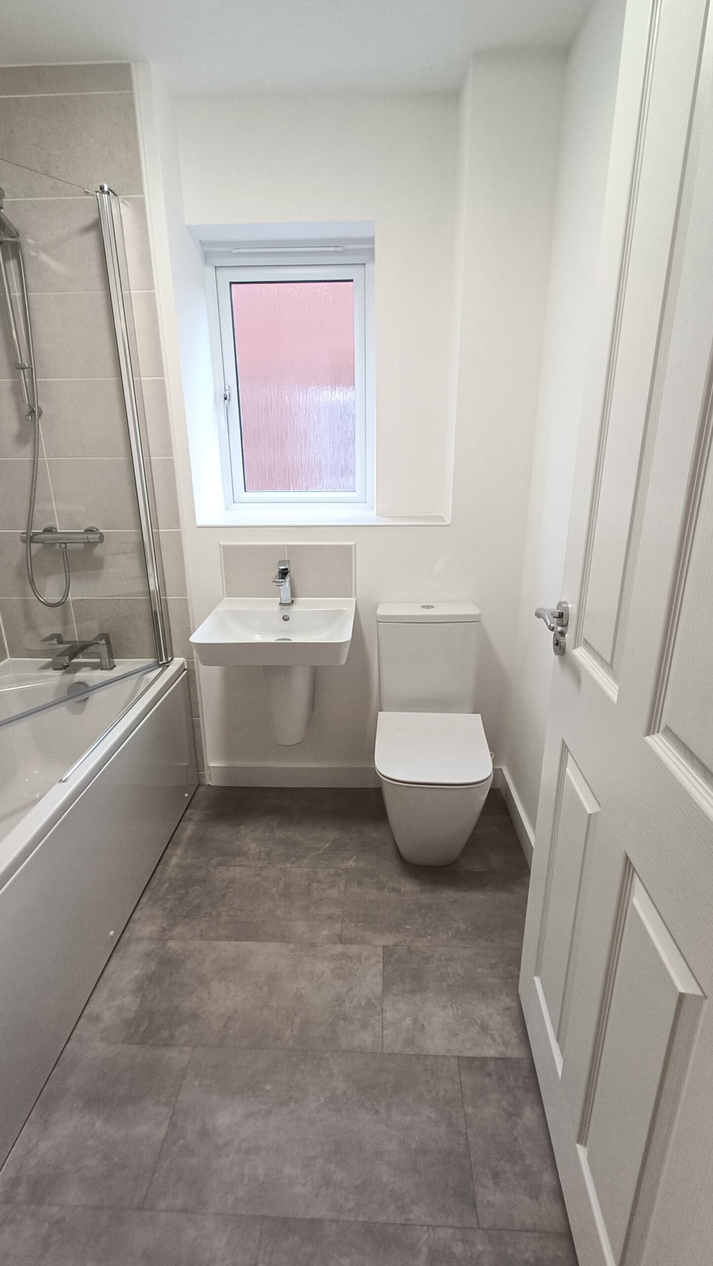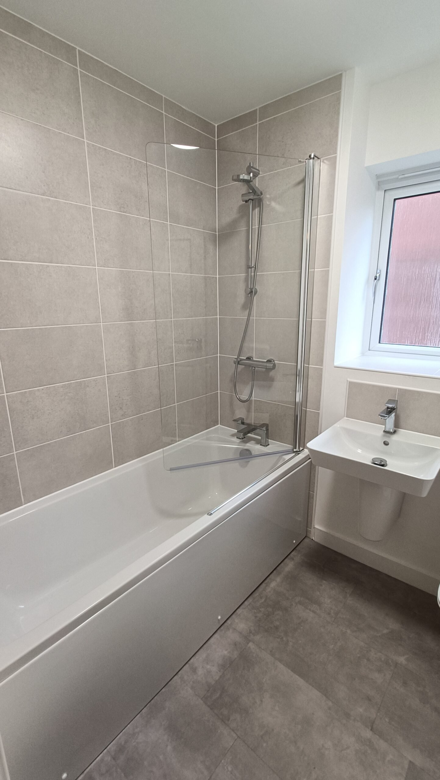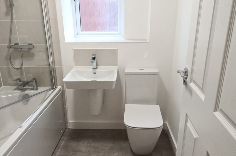 Family bathroom with shower over bath
